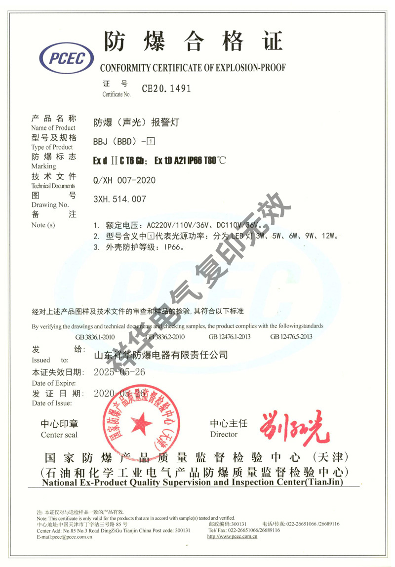 防爆(声光)报警灯 BBJ(BBD)-□ 防爆合格证